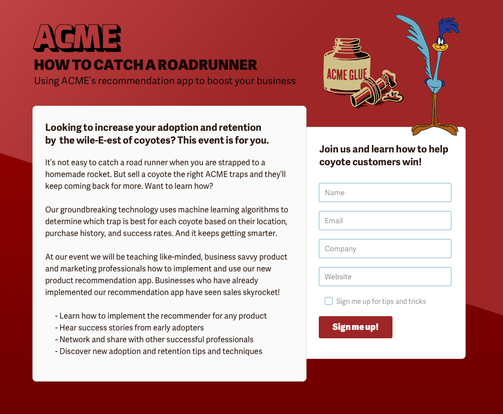 To take this one step further I’ll go through what I would do next if I had the budget and time to maximize the impact of this event page. For an event page like this, you can really optimize conversions by optimizing things such as headlines through A/B tests. It is also important to know where users come from, how long they stay on the page, and what percentage of those that click in the form actually complete the form.