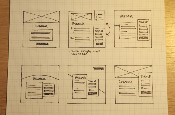 - 30 minutes writing copy and quickly sketching wireframes
